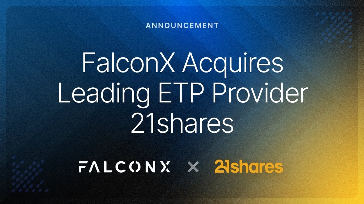 ย FalconX, una delle principali societร di prime brokerage istituzionali nel settore degli asset digitali, ha annunciato oggi di aver raggiunto un accordo per l’acquisizione di 21shares, il fornitore della piรน ampia gamma al mondo di fondi negoziati in borsa e prodotti (ETF/ETP) basati su criptovalute. L’operazione rappresenta una pietra miliare nella strategia di FalconX volta ad accelerare la convergenza tra mercati quotati e asset digitali, rafforzando al contempo la sua presenza globale negli Stati Uniti, in Europa e nella regione Asia-Pacifico.