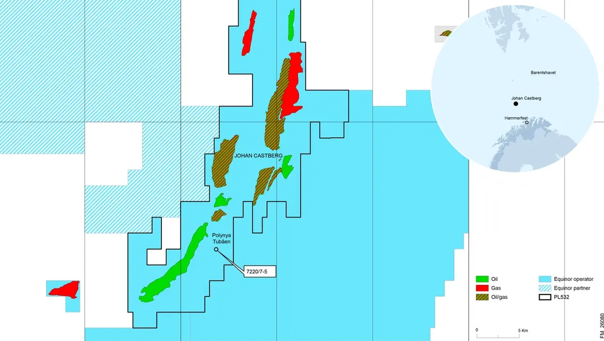 La scoperta è stata effettuata nel prospetto “Polynya Tubåen” (7220/7-5). Il pozzo è stato perforato con la piattaforma COSL Prospector. La stima preliminare del volume è compresa tra 14 e 24 milioni di barili di petrolio equivalente recuperabile.