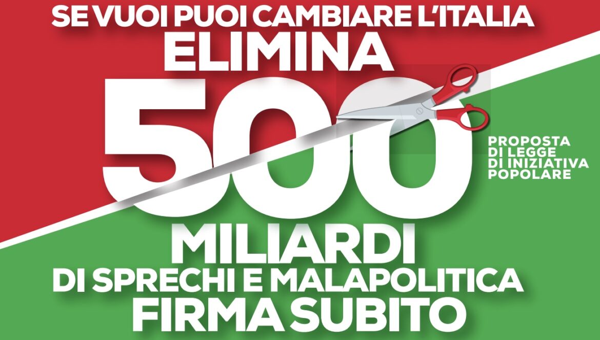 Arriverà lunedì 22 aprile in Cassazione una proposta di legge di iniziativa popolare per eliminare sprechi e cattiva gestione della politica degli ultimi 30 anni.