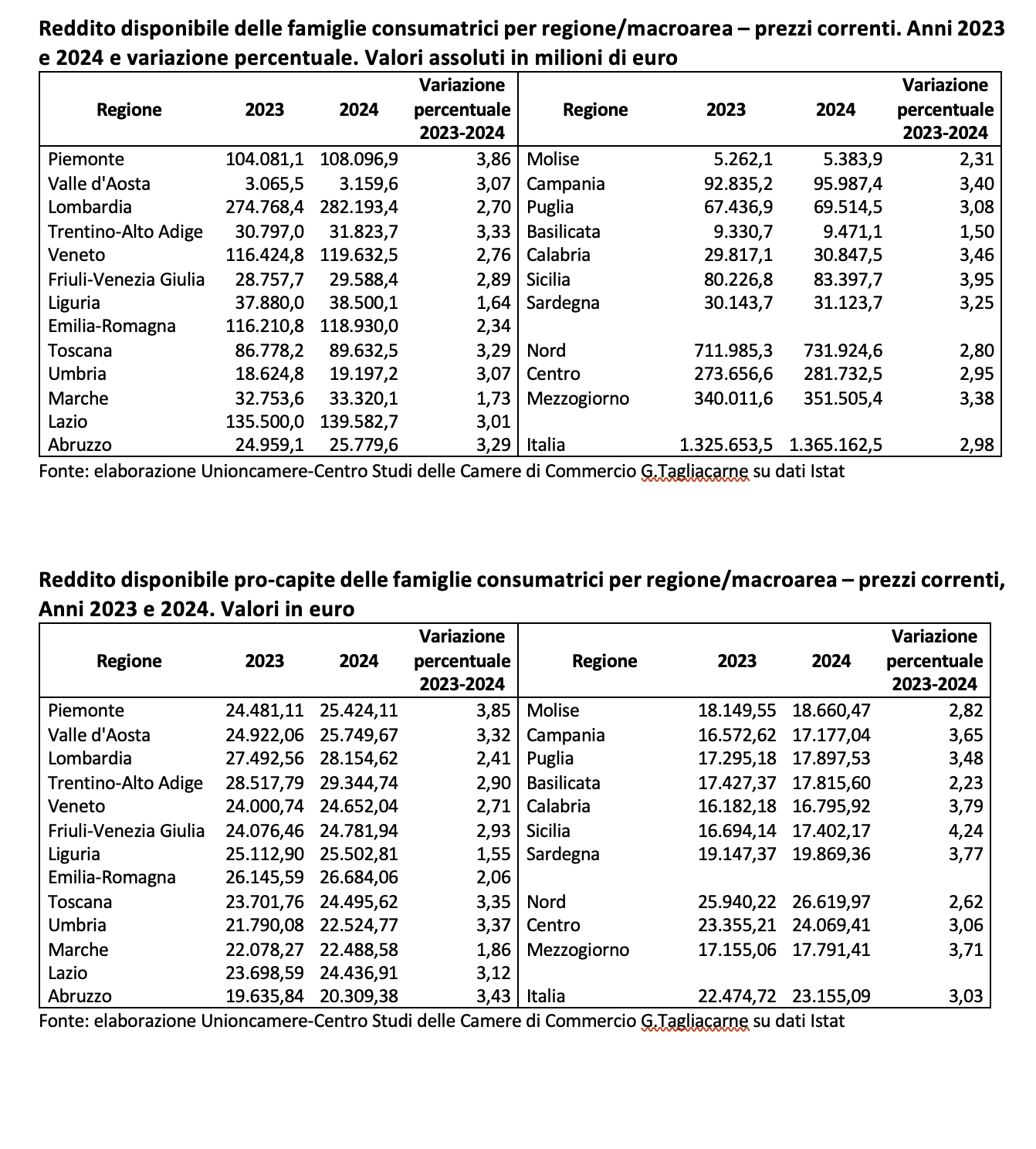 È quanto emerge dall’analisi di Unioncamere-Centro Studi Guglielmo Tagliacarne sulle stime 2024 del reddito disponibile delle famiglie consumatrici a valori correnti, misura della capacità di spesa della popolazione residente in Italia.
